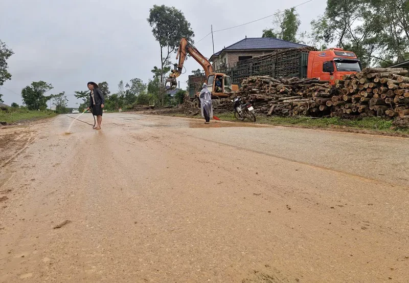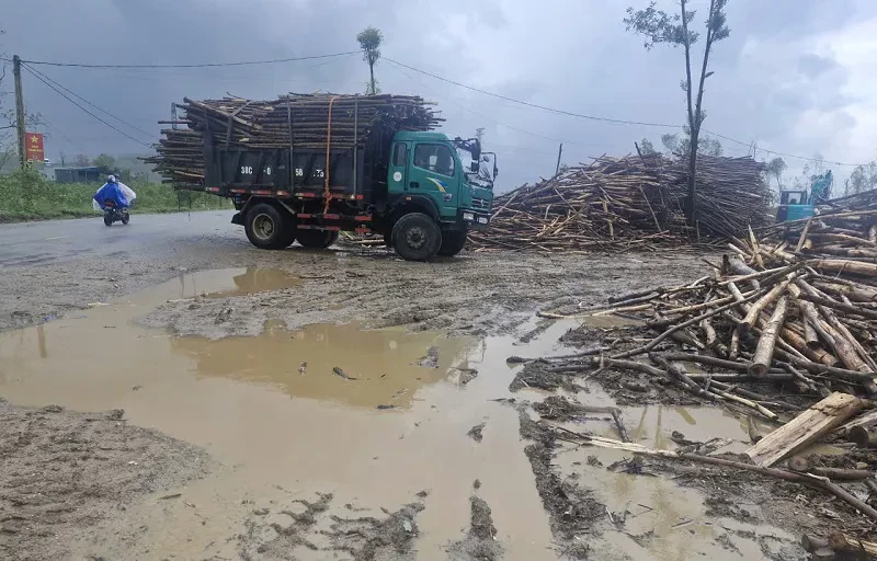 "Sau mưa bão khối lượng gỗ keo tràm đã thu mua rất lớn, trong khi đó bãi tập kết nhỏ hẹp, sát đường nên không tránh khỏi bùn đất, bụi bặm, ảnh hưởng đến môi trường và đi lại của người dân. Ngoài ra, mưa kéo dài dẫn đến việc xử lý môi trường, ngăn chặn bùn đất tràn ra đường cũng rất khó thực hiện” - ông Nguyễn Sỹ Chuyền chủ cơ sở thu mua gỗ keo tràm ở xã Trường Lưu biện bạch.