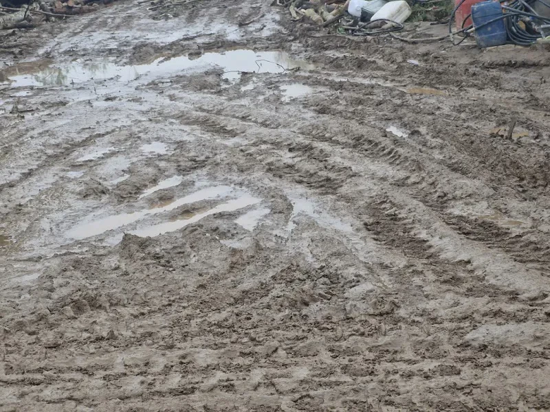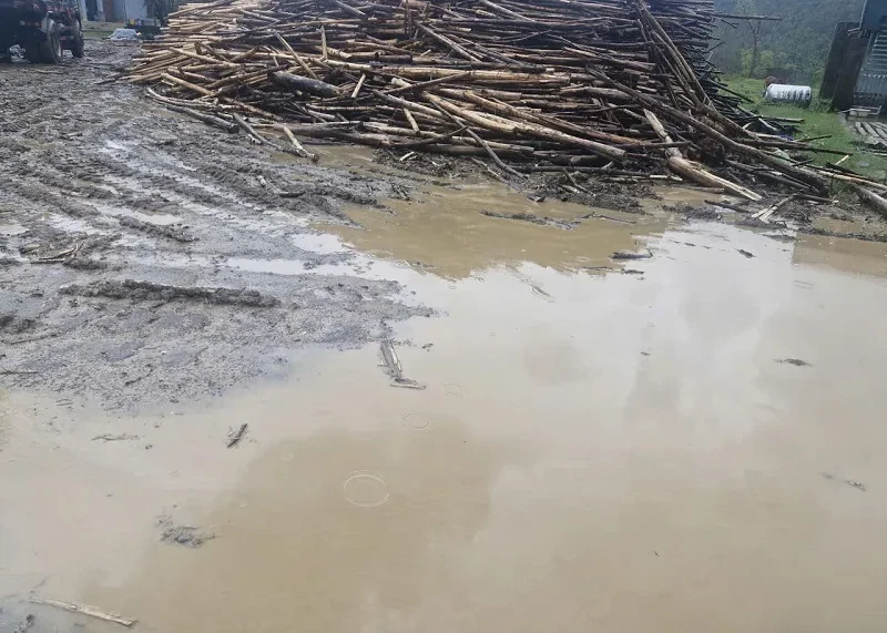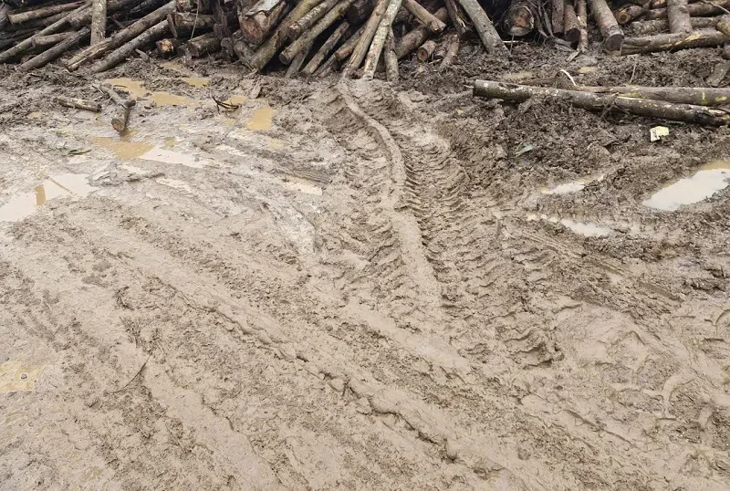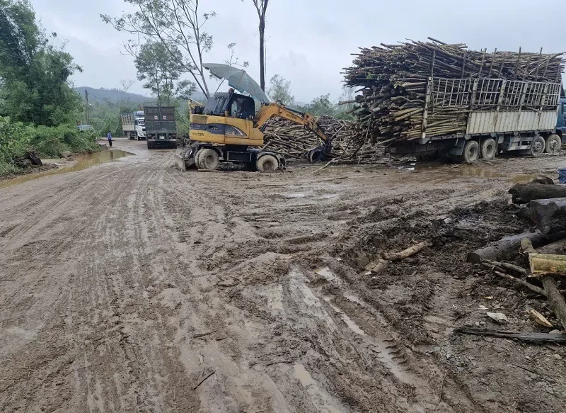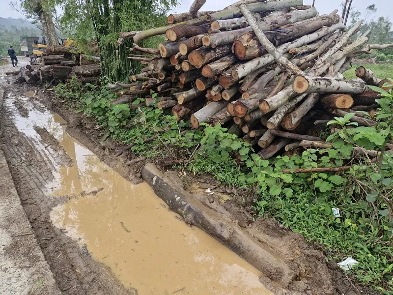 Gỗ keo tràm tập kết tràn lan, bừa bộn, vỏ, cành nhánh vứt tứ tung ven nhiều tuyến đường. Tại các cơ sở thu mua gỗ keo tràm mặt đường bị cày xới, băm nát nham nhở, bùn đất lầy lội, mương thoát nước bị vùi lấp gây ách tắc dòng chảy.